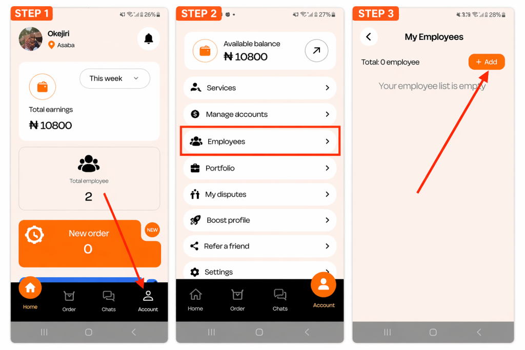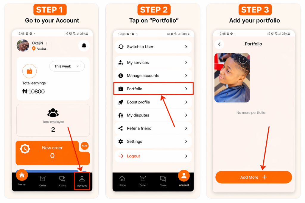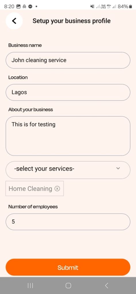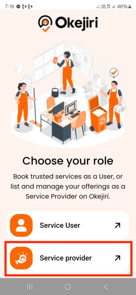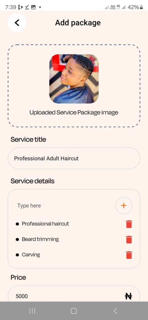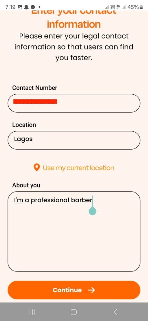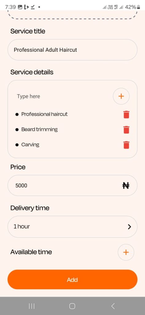 - Choose your category (e.g., barber, cleaner, makeup artist)