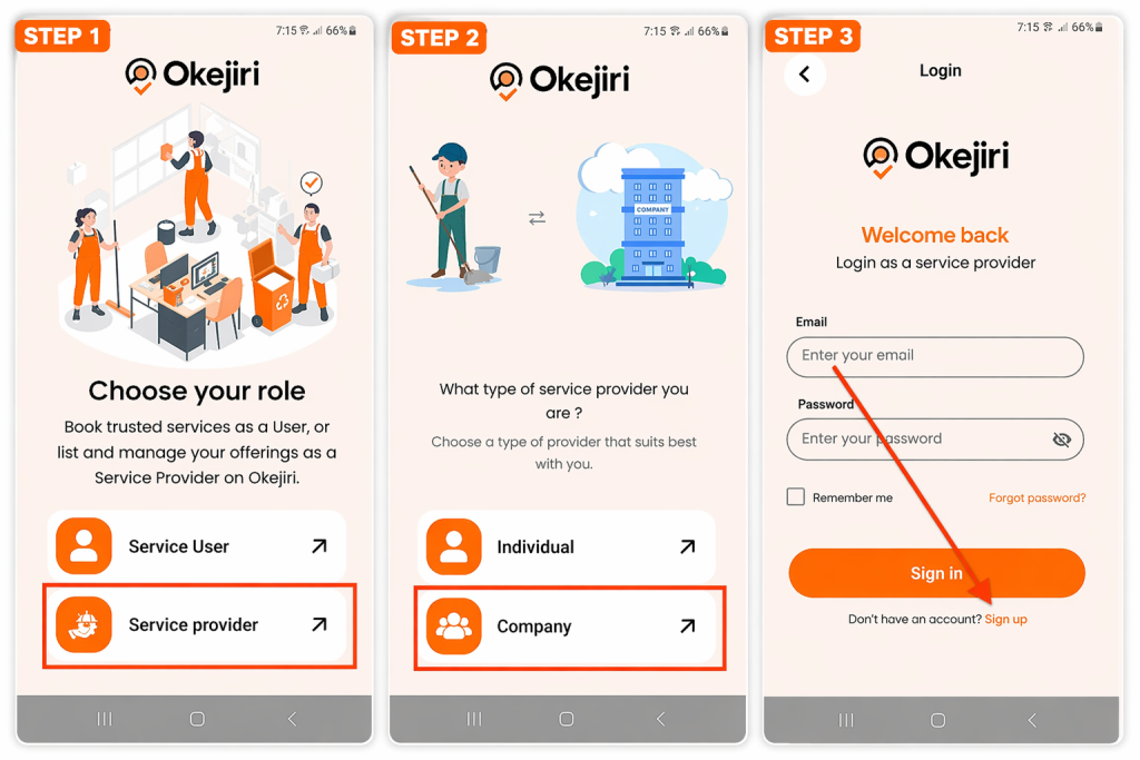 The Okejiri app makes it easy for both individuals and companies to connect with nearby clients, showcase their services, and get booked effortlessly.